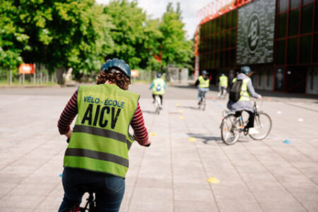 Avec l’implantation de 400 kilomètres de voies cyclables olympiques en Île-de-France, dont environ 120 kilomètres spécialement créés pour les Jeux olympiques et paralympiques de 2024, presque tous les sites franciliens, sauf Villepinte, seront accessibles à vélo depuis Paris via un itinéraire protégé et continu. Ce réseau comprendra 46 000 vélos en libre service (Vélib et opérateurs privés) et bénéficiera de l’ajout de 27 000 places de stationnement sécurisées provisoires autour des sites, dont 10 000 à Paris. Par ailleurs, plus de 3 000 places permanentes sont aménagées dans les grandes gares parisiennes. C’est dans cette dynamique que le projet « À vélo vers les JOP » a vu le jour. Geneviève Cron, chargée d’animation vélo au sein de l’association Mieux se déplacer à bicyclette, détaille : « La dynamique des JOP nous a permis de lancer un plaidoyer auprès des élus pour la mise en place d’actions d’aménagement et de services aux cyclistes. Par exemple, avec le soutien de l’ADEME, nous avons créé 4 nouvelles vélo-écoles en Île-de-France qui en compte désormais 19. Nous formons ainsi plus de 400 élèves tous les ans. » Le vélo, mode de transport largement plébiscité dans les grandes villes depuis la fin de l’épidémie de Covid, viendra s’ajouter à l’héritage des JOP de Paris 2024.