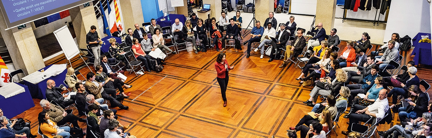 Marseille, Hôtel de Région. 30 avril 2019. Cent quarante personnes issues du monde des entreprises, des universités, des collectivités, des institutions… ont répondu présent pour apporter leur contribution à une nouvelle plateforme régionale dédiée à l’économie circulaire : la PRECI. Dans le cadre d’un « world café », ils débattent d’écoconception, de recyclage, de conciliation entre compétitivité et environnement…