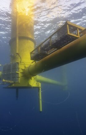 À quelques encablures de Cherbourg, dans le Raz Blanchard, le courant le plus puissant d’Europe va permettre, dès 2026, de produire une électricité décarbonée 100 % prédictible. Une ferme hydrolienne, constituée de 7 turbines de dernière génération, fournira au gré des marées de l’énergie aux territoires, à un coût compétitif dès 2030. Immergées, les turbines ne génèrent pas de perturbations visuelles, sonores ni maritimes.