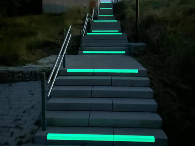 Aujourd’hui, il est possible de capter et stocker la lumière du jour pour la restituer aux heures sombres. C’est ce que fait la société OliKrom avec LuminoKrom®, une peinture luminescente constituée de minéraux qui captent la lumière et émettent la nuit pendant plus de 10 heures. Ce procédé unique et breveté favorise la sécurité des piétons et des véhicules de façon économique, autonome et totalement renouvelable. Il permet également de réduire considérablement le gaspillage énergétique et la pollution lumineuse pour la biodiversité, générés actuellement par l’éclairage artificiel de nos agglomérations.