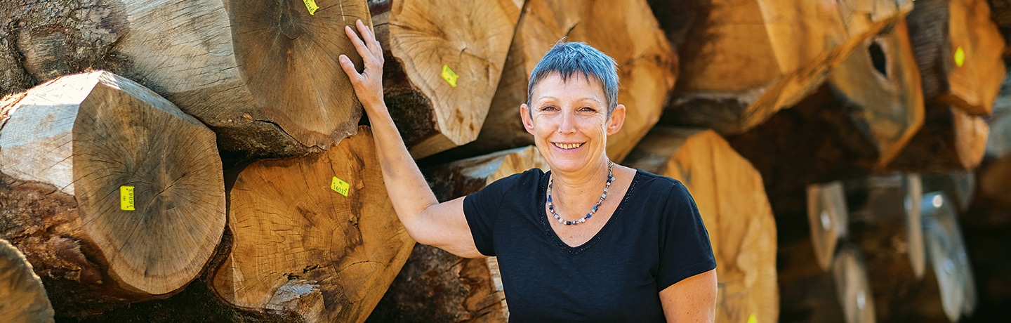 Dans la mythologie grecque, le chêne est symbole de force, de pouvoir et de longévité. Le portrait craché de Valérie Deschaseaux, dont la scierie débite 50 000 m3 par an de grumes de chêne.