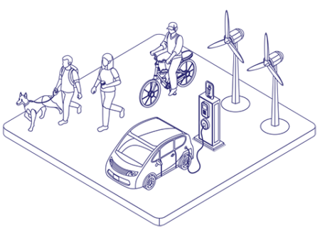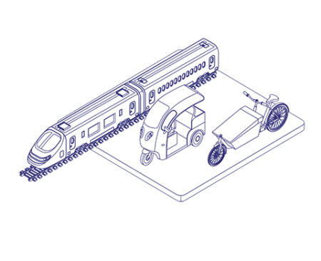 Ici, la demande de mobilité diminue de 10 % en kilomètres, reflétant une tendance à des interactions et un mode de vie orientés vers une proximité plus importante au quotidien ; un tourisme plus local et durable se développe, entraînant une moindre demande de longs transports. Le report modal (passer d’un transport routier à un autre mode de transport moins émetteur) est poussé par des investissements importants et on voit se développer des véhicules intermédiaires entre le vélo et la voiture (vélos cargos, pliants, vélomobiles, minivoitures…), le partage des véhicules sous ses différentes formes (covoiturage, autopartage, flottes en free floating, etc.) et une forte électrification. Cette transition s’opère en coconstruction avec les acteurs de la mobilité et les citoyens, très près de leurs besoins et des spécificités des territoires.