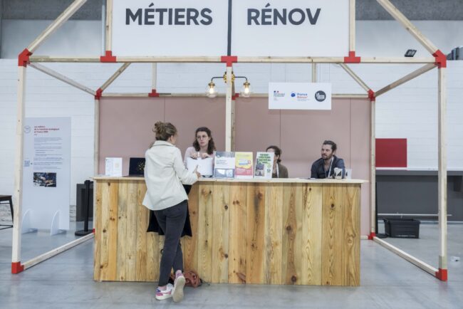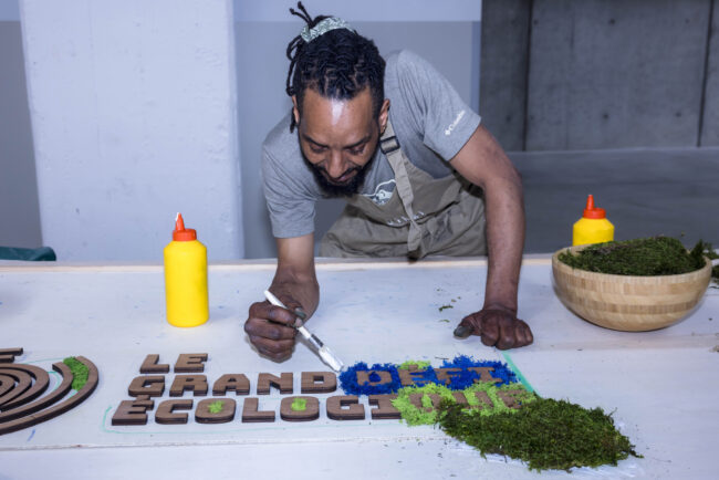 La scénographie du Grand Défi Ecologique a vu le jour grâce à la collaboration de trois personnes : Damien Forget, fondateur de la Ressourcerie culturelle qui a apporté son expertise en économie circulaire et permis de collecter les matériaux, Camille Malherbe, scénographe qui l’a dessiné et Nicolas Poirier, chef d’atelier qui a orchestré la construction. Leurs équipes se sont mobilisées pendant 3 mois pour réaliser les décors en collaboration avec 9 constructeurs. Une partie des matériaux avait été récupérée de la précédente édition, tandis que le reste venait de partenaires comme Artstock et La Ressourcerie du Cinéma. Bonus : après l’événement, la scénographie a repris le chemin des ateliers pour être démontée, afin que les éléments soient réutilisés sur d’autres projets.