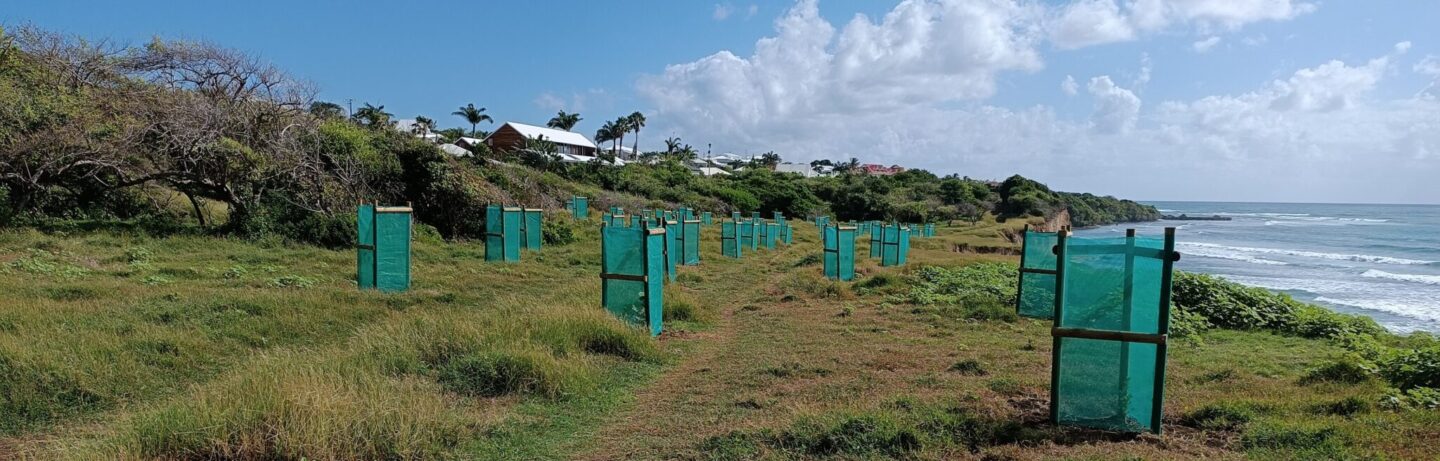 L’érosion des côtes est un vrai problème en Guadeloupe. Sur la plage du Bois Jolan par exemple, le trait de côte a reculé de plus de 50 mètres ! Les causes de cette importante érosion ? La hausse des températures, le ruissellement des eaux de pluie et les submersions marines avec comme conséquences : une perte de la biodiversité, jusqu’à la disparition de certaines espèces.